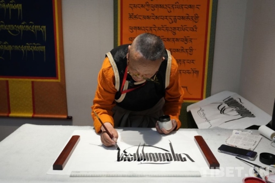 圖為第二屆“文化原鄉(xiāng) 福地壤塘”2025北京行活動(dòng)期間,參展者為觀眾展示藏文書(shū)法技藝 攝影:王茜