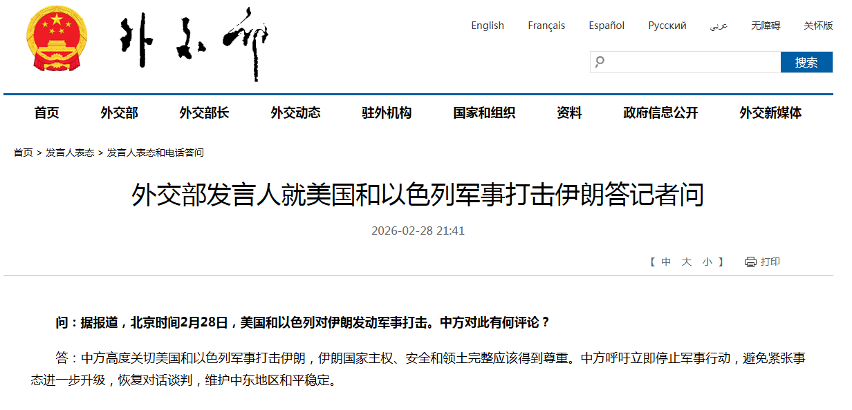 應(yīng)中國(guó)和俄羅斯的要求,聯(lián)合國(guó)安理會(huì)緊急召開(kāi)會(huì)議。中國(guó)外交部第一時(shí)間表明嚴(yán)正立場(chǎng):伊朗國(guó)家主權(quán)、安全和領(lǐng)土完整應(yīng)該得到尊重。