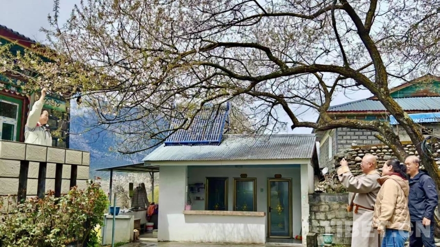 游客在波密縣境內(nèi)桃樹下拍照打卡 攝影:次旦拉姆