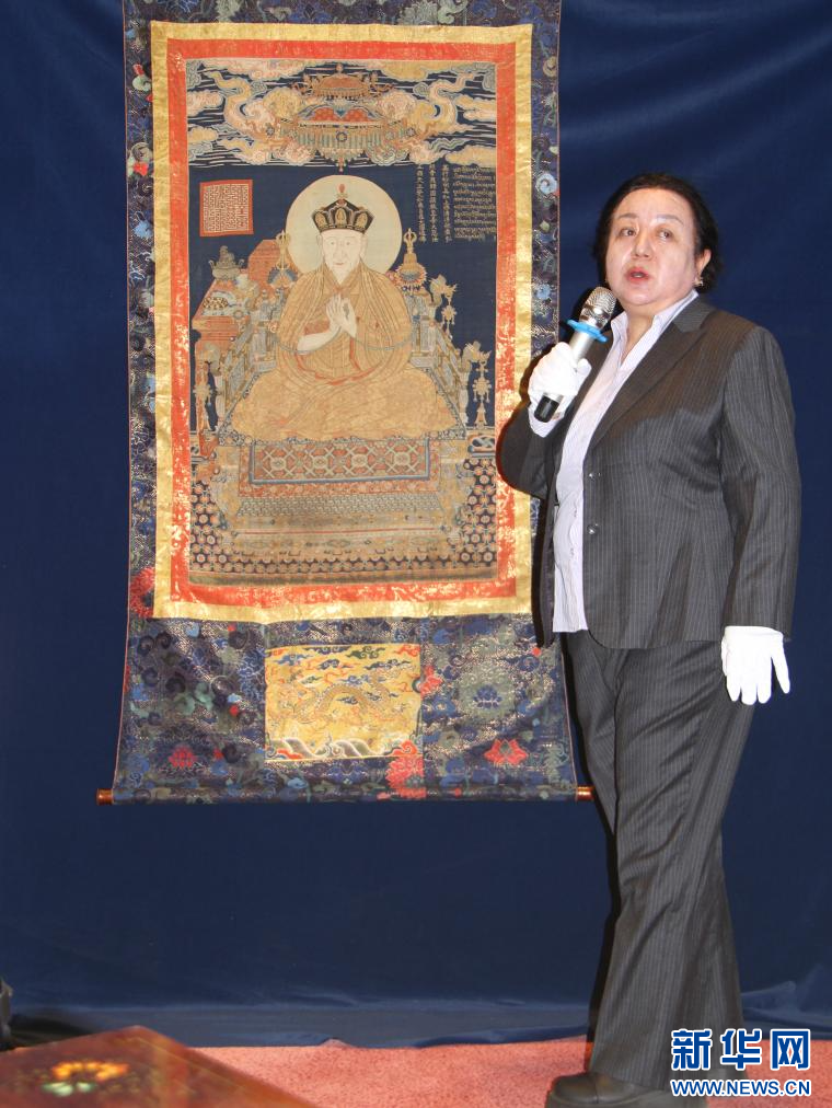 羅布林卡管理處文物科科長(zhǎng)色莉瑪帶來了“大慈法王唐卡”。