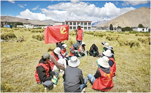 圖為薩爾鄉(xiāng)開(kāi)展“助農(nóng)秋收”志愿活動(dòng)。 圖/文 記者 楊子彥