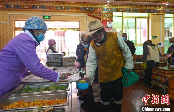 圖為2024年1月27日,西藏薩迦縣特困人員集中供養(yǎng)中心的老人們?cè)谂抨?duì)打飯。資料圖 趙朗 攝