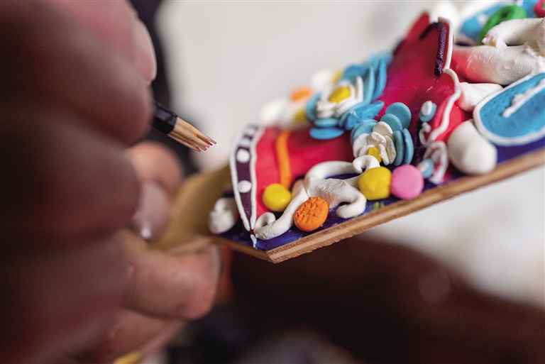 當(dāng)記者聊起如今市面上也有機(jī)器雕刻的酥油花時(shí),師傅羅布次仁停下手中的活,說(shuō)道:“酥油花是千年傳承下來(lái)的瑰寶,講究一年換一新,同樣也講究人們制作時(shí)注入的美好愿望和祝福。早在2013年,它就被列入西藏自治區(qū)級(jí)非物質(zhì)文化遺產(chǎn)名錄。如今雖然出現(xiàn)了機(jī)器雕刻的酥油花,但它們?nèi)绷舜鄠鞯牧α?,機(jī)械復(fù)制不了指尖傳遞的溫度。我們要傳承好這門技藝?!?/p>