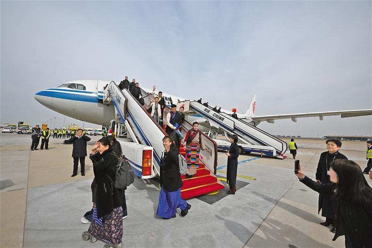 3月3日下午,出席全國兩會的西藏代表委員乘機抵達(dá)首都北京,正式開啟“兩會時間”。