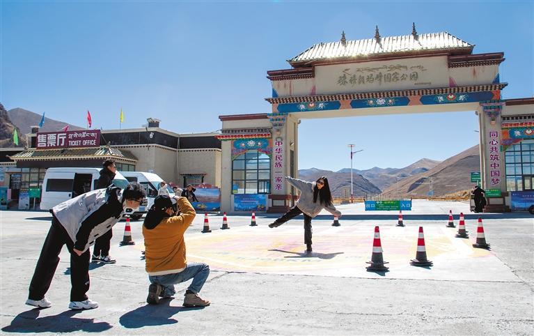 圖為游客在珠峰北大門打卡拍照。記者 旦增嘎瓦 扎西頓珠 攝