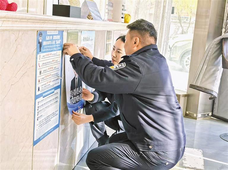 山南檢察司法警察協(xié)助檢察官對(duì)校園周邊賓館登記入住情況進(jìn)行執(zhí)法檢查,清理校園周邊環(huán)境。 圖片均由山南市檢察院提供