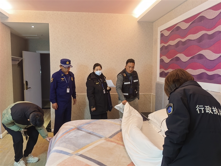 文旅部門對酒店進(jìn)行檢查。 圖片由西藏自治區(qū)文旅廳執(zhí)法監(jiān)督處提供