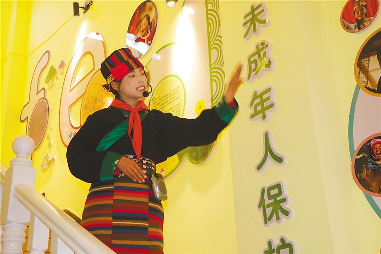 圖為小講解員在曲松縣人民檢察院講解小艾巴未成年人法治教育之家實(shí)踐成果。圖/文 記者 武沛濤