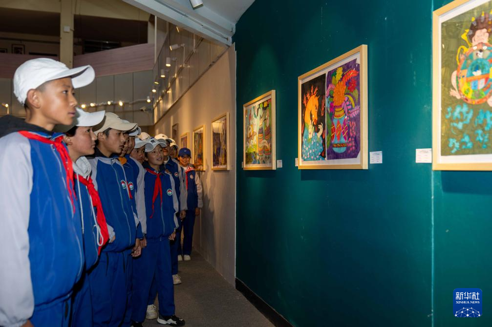 5月20日,在西藏自治區(qū)群藝館,觀眾在啟動儀式上參觀中學(xué)生繪畫作品展。新華社記者 旦增尼瑪曲珠 攝