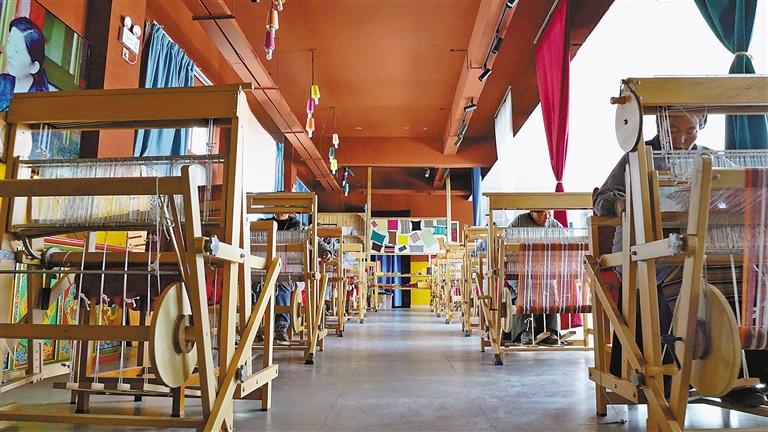 工作人員拉片說(shuō):“以前就算自己會(huì)編織,也沒(méi)有好的銷路,收入很少?,F(xiàn)在在這里工作,不僅每個(gè)月有固定的工資,還能照顧到家里,很方便。”