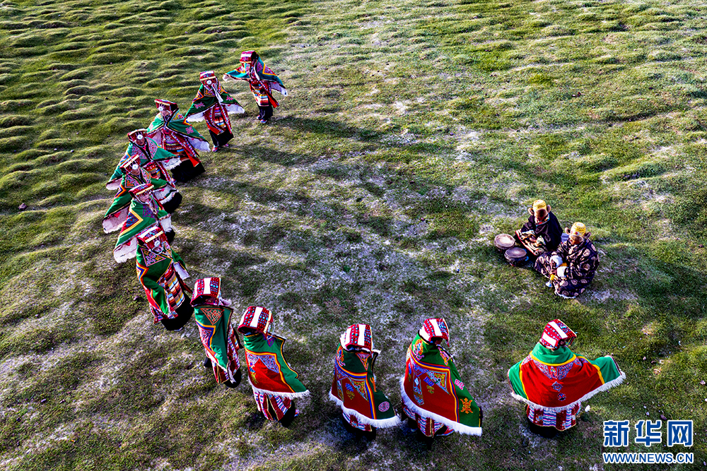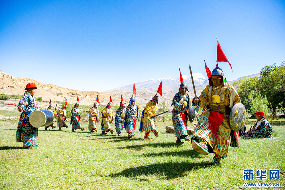普蘭縣西德村村民在表演“果爾孜舞”(6月10日攝)。“果爾孜舞”有1300多年的歷史,傳承沿襲傳統(tǒng)的口口相傳。2011年,被列入國家級非物質文化遺產名錄。新華網(wǎng) 旦增努布 攝