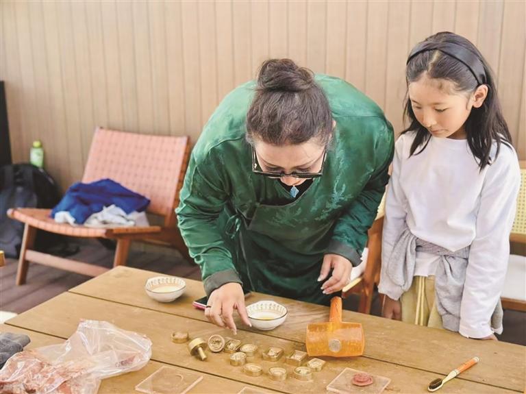 在集中展示區(qū),白納鍛銅技藝的精美器具、達(dá)孜章多傳統(tǒng)藏香制作技藝的馥郁芬芳、達(dá)孜傳統(tǒng)藏戲服飾制作技藝的精美華服,以及傳統(tǒng)染色、編織技藝等非遺作品琳瑯滿目。其中,最受歡迎的當(dāng)屬現(xiàn)場體驗(yàn)環(huán)節(jié),在非遺代表性傳承人的悉心指導(dǎo)下,觀眾零距離感受非遺魅力,沉浸式體驗(yàn)傳統(tǒng)文化的獨(dú)特韻味。