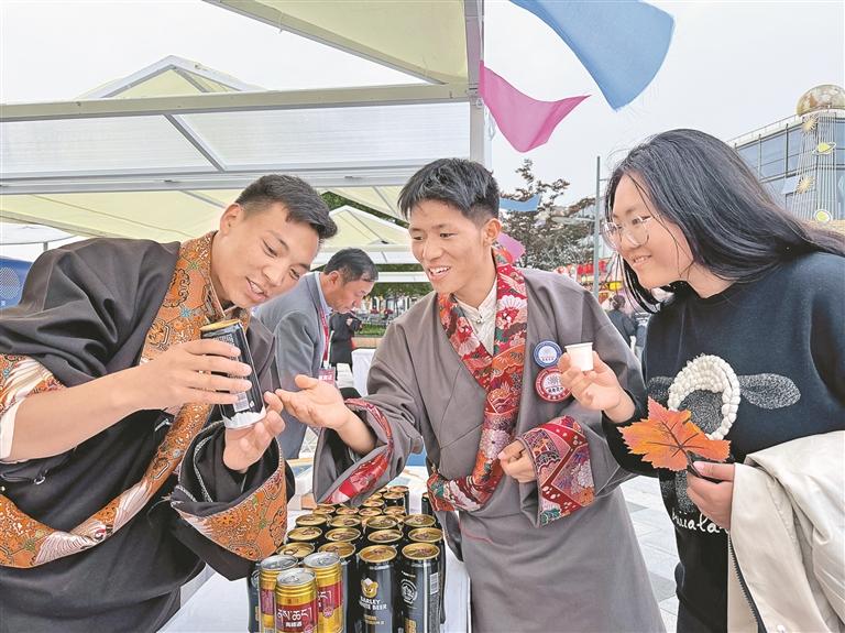 文化展演區(qū)內(nèi),伴隨著歡快的民族音樂響起,墨竹工卡縣松贊藝術(shù)團(tuán)演職人員與南京市民一起跳起了歡快的鍋莊。歌舞表演的互動(dòng)環(huán)節(jié),觀眾上臺制作糌粑,品嘗酥油茶,一系列豐富有趣的互動(dòng)環(huán)節(jié),不斷加深著各民族之間的交往交流交融,也展現(xiàn)了墨竹工卡縣各族群眾熱愛家鄉(xiāng)、團(tuán)結(jié)友善、不斷進(jìn)取的良好精神風(fēng)貌。