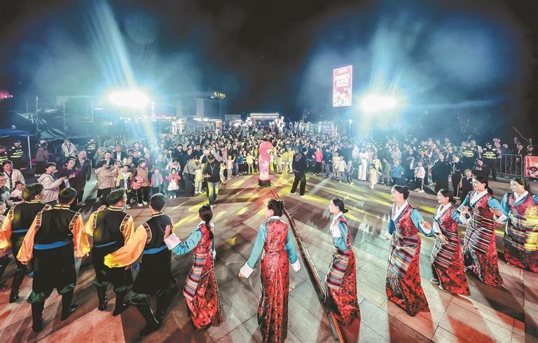 圖為萬人鍋莊晚會(huì)現(xiàn)場,南京市民與墨竹工卡縣松贊藝術(shù)團(tuán)演職人員一起跳鍋莊。
