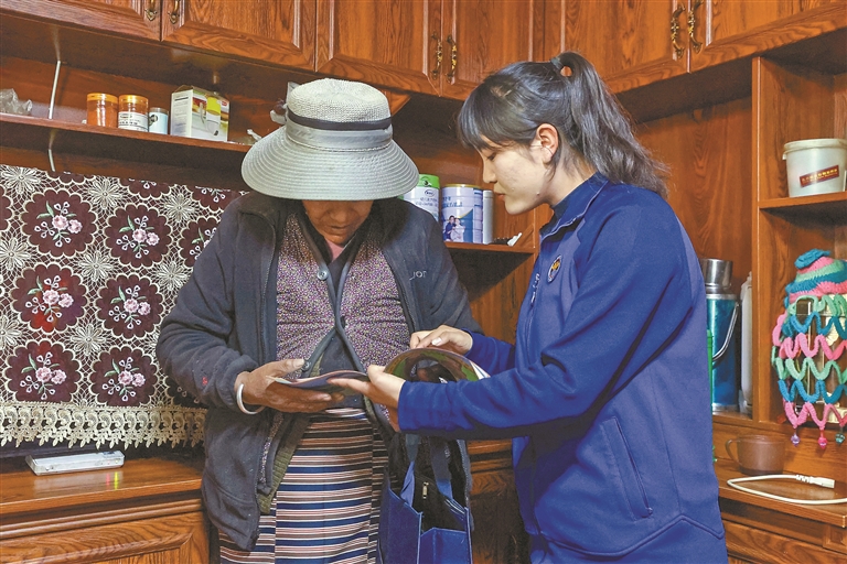 圖為崗拉美朵女子雙語志愿服務隊開展“敲門入戶”行動。記者 王香香 見習記者 土旦仁青 攝