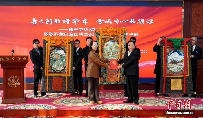 12月22日,“唐卡新韻譜華章 雪域同心共輝煌——鑄牢中華民族共同體意識(shí)”主題展覽在北京民族文化宮展覽館正式啟幕。此次展覽以唐卡這一非遺藝術(shù)為載體,全景呈現(xiàn)西藏自治區(qū)成立60年來(lái)的發(fā)展巨變,尤其聚焦黨的十八大以來(lái)的歷史性跨越,為觀眾獻(xiàn)上一場(chǎng)融合傳統(tǒng)技藝與時(shí)代精神的文化盛宴。