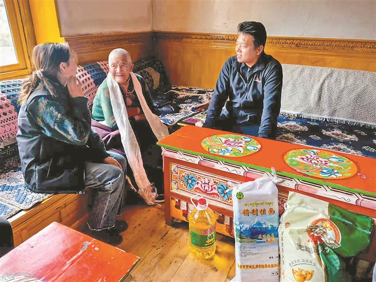圖為洛隆縣孜托鎮(zhèn)駐村工作隊(duì)到群眾家中看望慰問(wèn)老人。