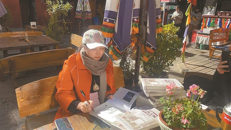 圖為滿格格在為新書(shū)簽名。