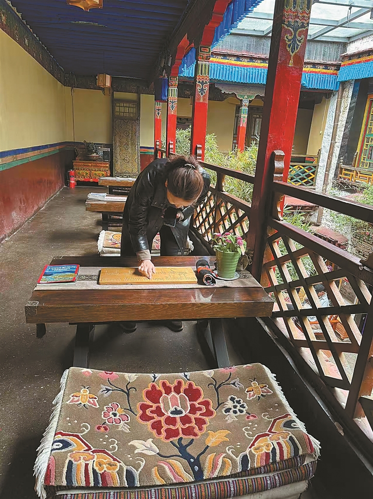 圖為滿格格在采訪藏族民俗專家。