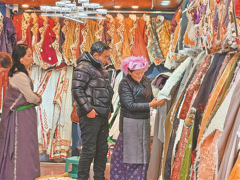 圖為市民在購(gòu)買藏裝。記者 王敏 攝