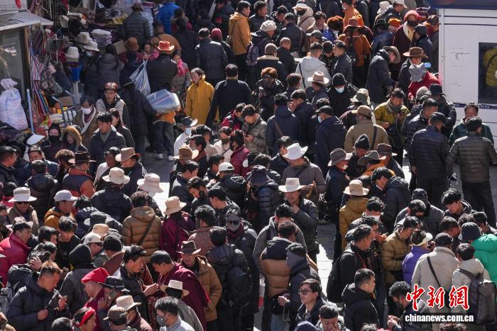 1月27日,藏歷新年將至,拉薩街頭年味漸濃。城區(qū)街巷燈籠高掛,市民忙著采購酥油花、香布、切瑪盒、吉祥羊頭、藏文春聯(lián)等特色年貨,各式新年好物琳瑯滿目,處處洋溢著喜慶祥和的節(jié)日氛圍,人們以傳統(tǒng)方式迎接新年到來。圖為拉薩沖賽康市場前來選購年貨的民眾絡繹不絕。貢確 攝