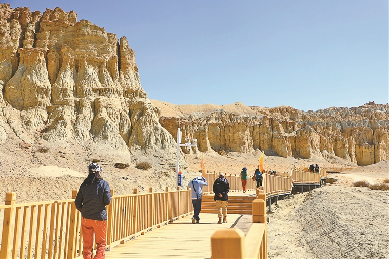游客們在香孜五彩土林景區(qū)內(nèi)游覽。記者 永青 攝