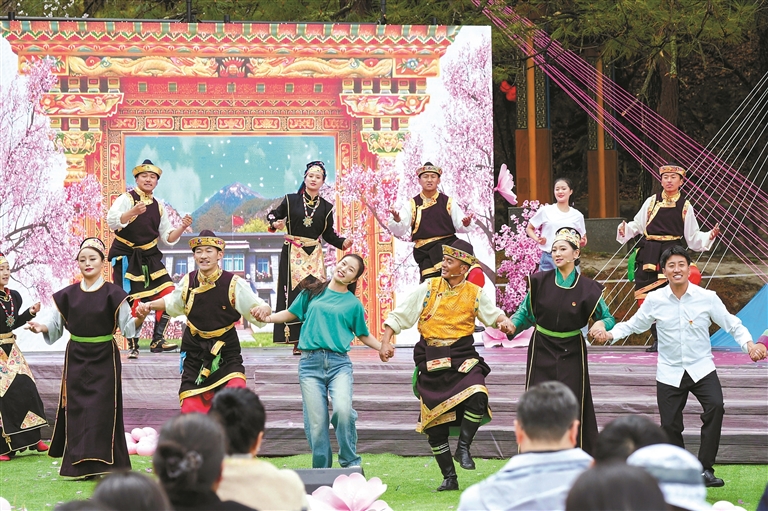 本次聯(lián)誼會以“桃吟莞宜 聲動巴宜”為主題,分為“春桃映雪·山海相依”“桃枝含露·詩寄云巒”“樂漾桃香·藝脈流長”三個篇章,《嘎拉村的歡笑》《最美的答卷》《來自遠方的信》《金色的寶庫》等22個節(jié)目將東莞嶺南文化的溫婉與巴宜“雪域江南”的壯美精彩融合,民族韻律與現(xiàn)代和聲交相輝映,奏響了一曲曲民族團結(jié)的生動樂章。