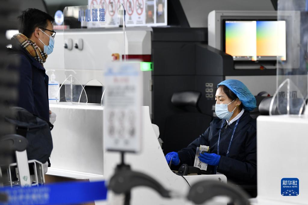 12月30日,拉薩貢嘎機(jī)場一名地勤人員在為乘客辦理登機(jī)手續(xù)。新華社記者 張汝鋒 攝