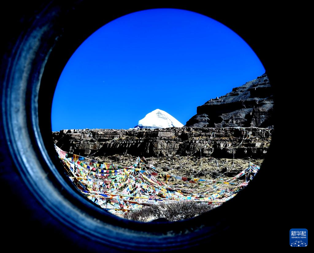岡仁波齊峰與經幡(1月30日攝)。新華社記者 關明輝 攝
