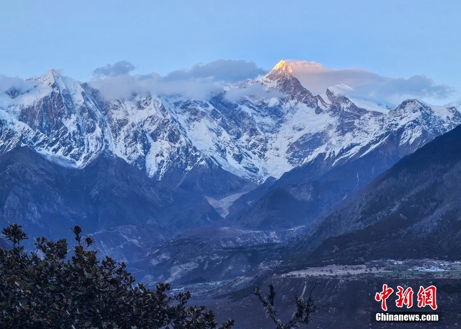 4月1日,西藏林芝市米林市境內(nèi)的南迦巴瓦峰下,桃花盛開,吸引了眾多游客前來游玩。南迦巴瓦峰被譽(yù)為“眾山之父”,海拔7782米,其山頂終年積雪,而山腳下則是郁郁蔥蔥的樹木和盛開的桃花,形成了一幅獨(dú)特的垂直自然景觀。圖為南迦巴瓦峰顯露出“日照金山”的美景。