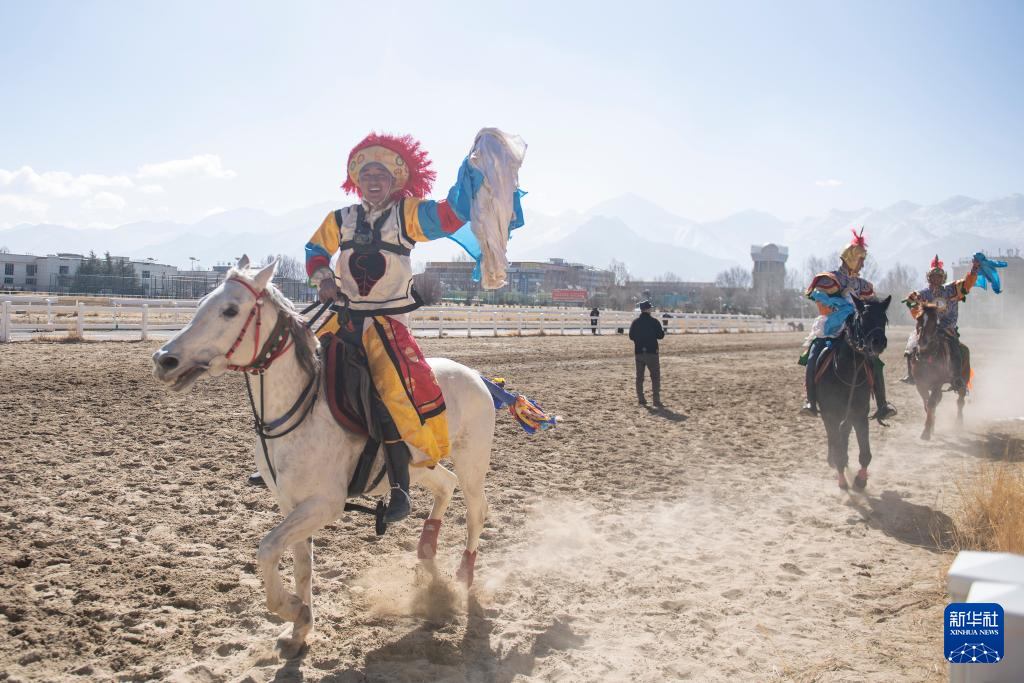 在拉薩賽馬場(chǎng),騎手表演馬上射箭(2月12日攝)。新華社記者 孫瑞博 攝