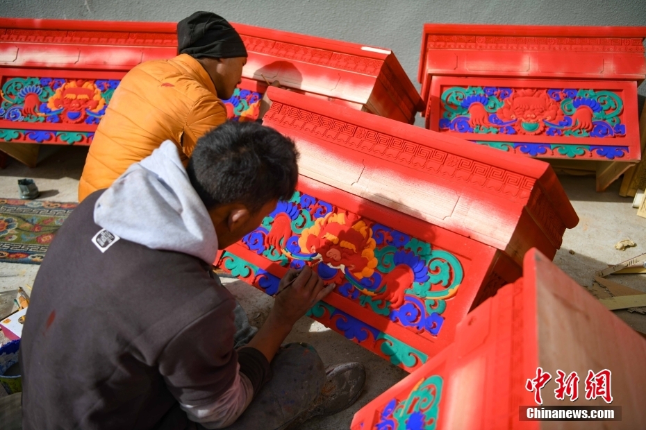 12月28日,西藏拉薩堆龍德慶區(qū),古俗民族傳統(tǒng)手工藝發(fā)展專業(yè)合作社員工在家具上繪制藏式裝飾。據(jù)悉,該合作社以繪畫、木工、縫紉為主,承接傳統(tǒng)手工藝方式制作家具、房子裝修、唐卡繪畫、旅游產(chǎn)品、文物建筑維修等工作。自2018年合作社成立至今,帶動就業(yè)共60余人。 中新社記者 貢嘎來松 攝