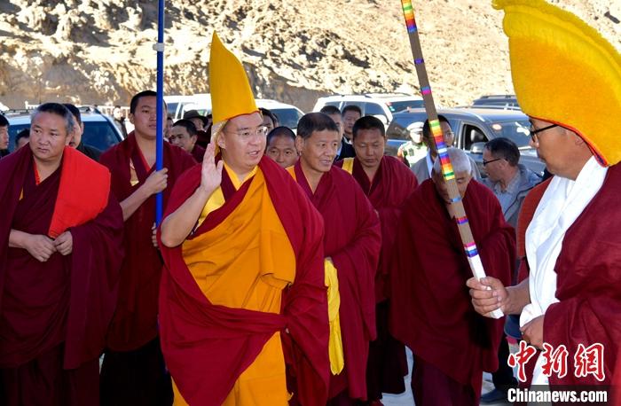 11月20日,班禪抵達(dá)日喀則南木林縣拉定寺。中新社記者 李林 攝