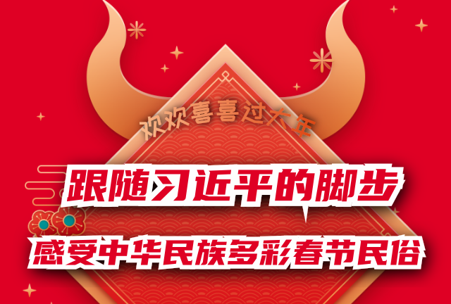 春節(jié)前夕看望慰問基層干部群眾,是習(xí)近平總書記每年的一項(xiàng)重要活動(dòng)。讓我們跟隨習(xí)近平總書記的腳步,一起來(lái)感受全國(guó)各地多姿多彩的春節(jié)民俗,感受各族人民一家親,歡歡喜喜過大年的幸福與快樂。