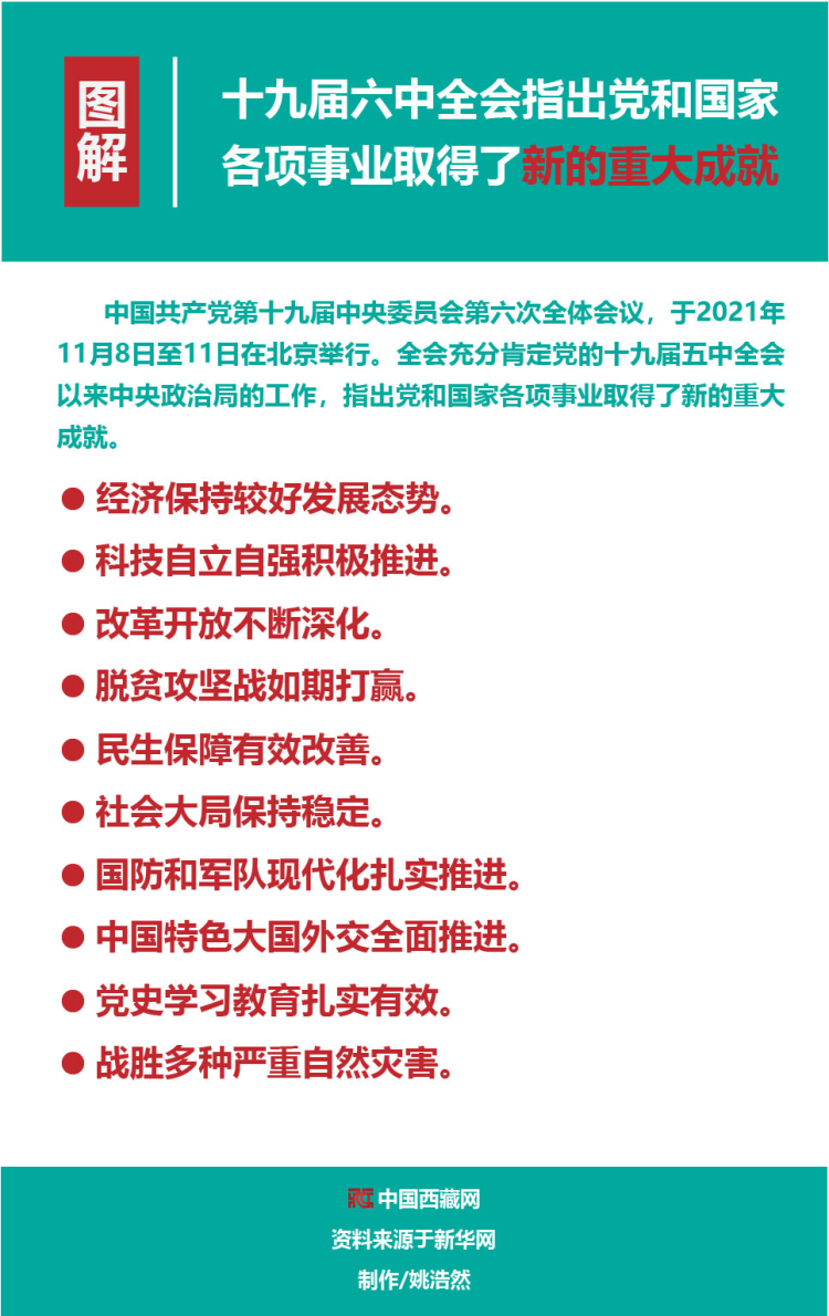 圖解丨十九屆六中全會(huì)指出黨和國家各項(xiàng)事業(yè)取得了新的重大成就