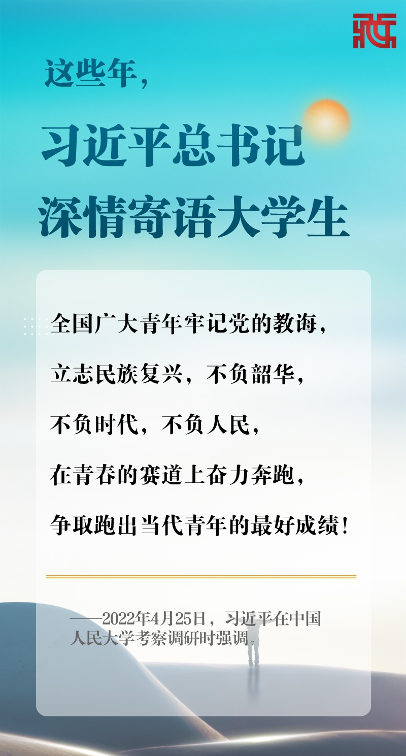 在五四青年節(jié)即將到來之際,中共中央總書記、國家主席、中央軍委主席習近平4月25日上午來到中國人民大學考察調(diào)研。習近平總書記一直特別關(guān)心大學生們的學習和成長,曾多次走到大學生中間,同他們談人生、話理想。