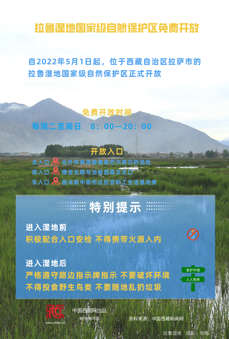 自2022年5月1日起,位于西藏自治區(qū)拉薩市的拉魯濕地國家級(jí)自然保護(hù)區(qū)正式開放。[詳細(xì)] -