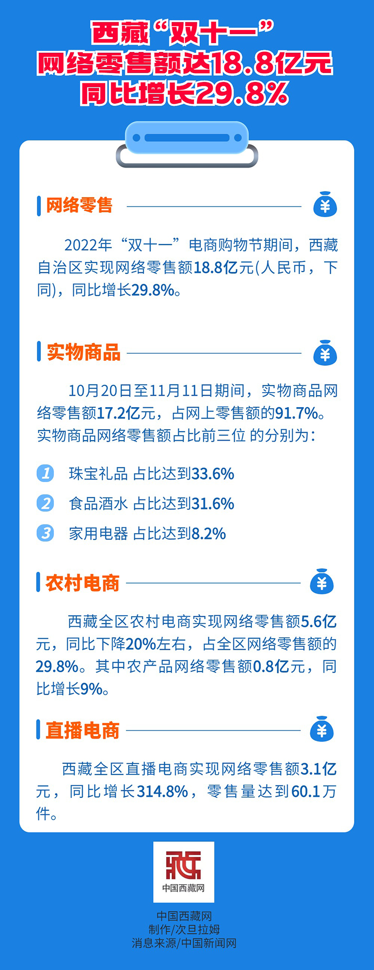 西藏“雙十一”網(wǎng)絡零售額達18.8億元 同比增長29.8%