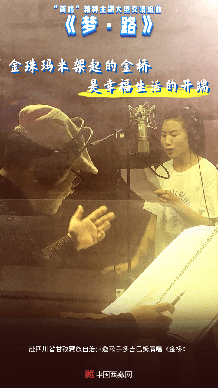 創(chuàng)作團隊三次深入西藏、四川、青海等省區(qū)市的二十多個“兩路”相關(guān)歷史地域,拜訪數(shù)十位民族民間器樂演奏、聲樂演唱、藏戲表演藝術(shù)家和國家級非物質(zhì)文化遺產(chǎn)傳承人,對藏族風(fēng)格音樂素材進行詳盡細致的采集,從中國愛樂樂團演奏家們的傾情演奏,到四川省甘孜藏族自治州金剛寺大殿采聲,從錄制藏族姑娘銀鈴天籟般的嗓音,到83歲高齡的國家級非物質(zhì)文化遺產(chǎn)傳承人的獻唱山歌……《夢·路》讓大型交響樂和原生態(tài)聲音融合、碰撞、組合,用音符刻畫了中華筑路英雄馳騁世界屋脊的偉大樂章。(中國西藏網(wǎng) 編輯、制作/王茜 供圖/方崠清)