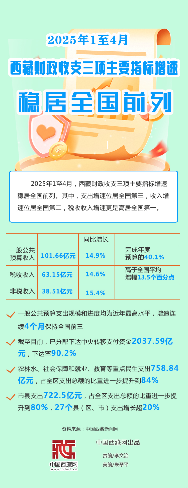 海報(bào)|2025年1至4月西藏財(cái)政收支三項(xiàng)主要指標(biāo)增速穩(wěn)居全國前列