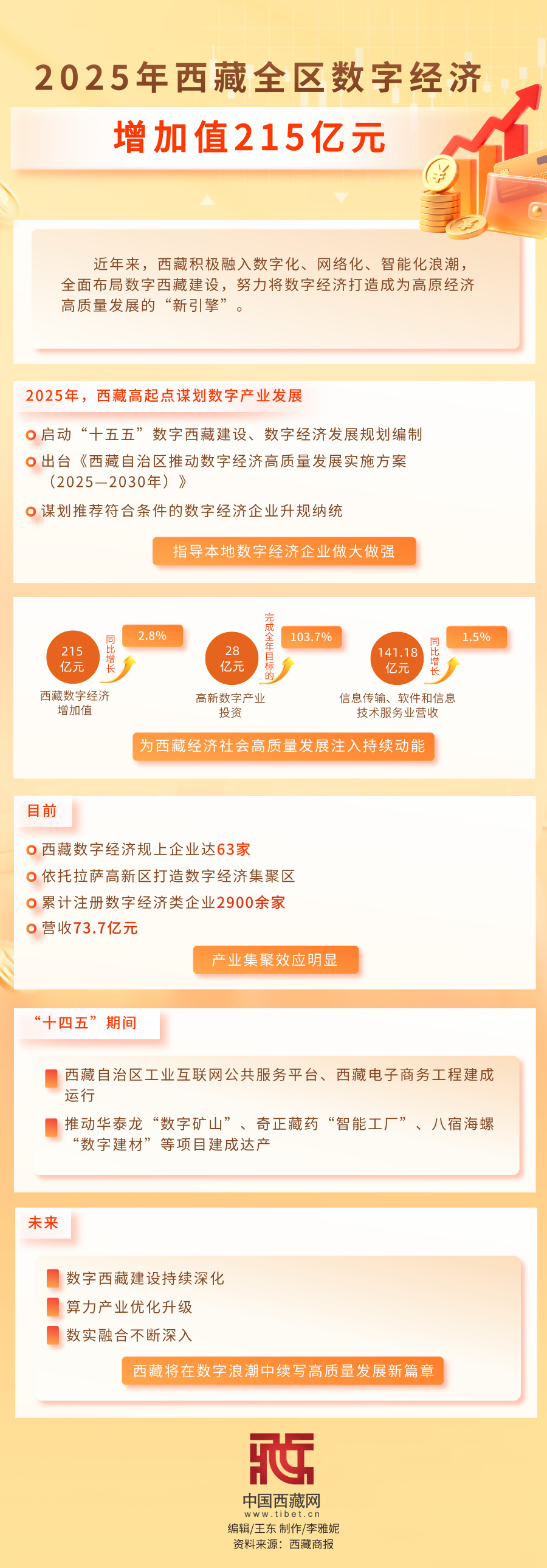 海報(bào)|2025年西藏全區(qū)數(shù)字經(jīng)濟(jì)增加值215億元