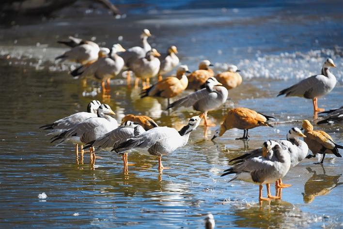 冬日,西藏拉薩市宗角祿康公園成為了鳥兒的“樂園”,公園內(nèi)聚集了大批越冬候鳥,同時(shí),數(shù)不盡的斑頭雁、赤麻鴨、紅嘴鷗在這里嬉戲、覓食,成為公園里的一道風(fēng)景線。[詳細(xì)]