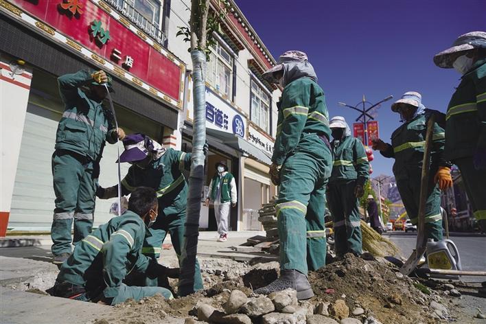 4月23日,記者在拉薩市朵森格路北段看到,道路兩旁正在栽種新樹木——大葉女貞。[詳細(xì)] -