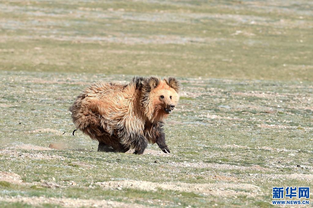 奔跑中的西藏棕熊。(新華社記者 覺果 攝)