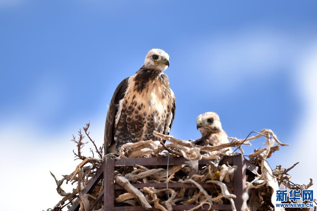 金雕在人工筑的鷹架上棲息。(新華社記者 覺果 攝)