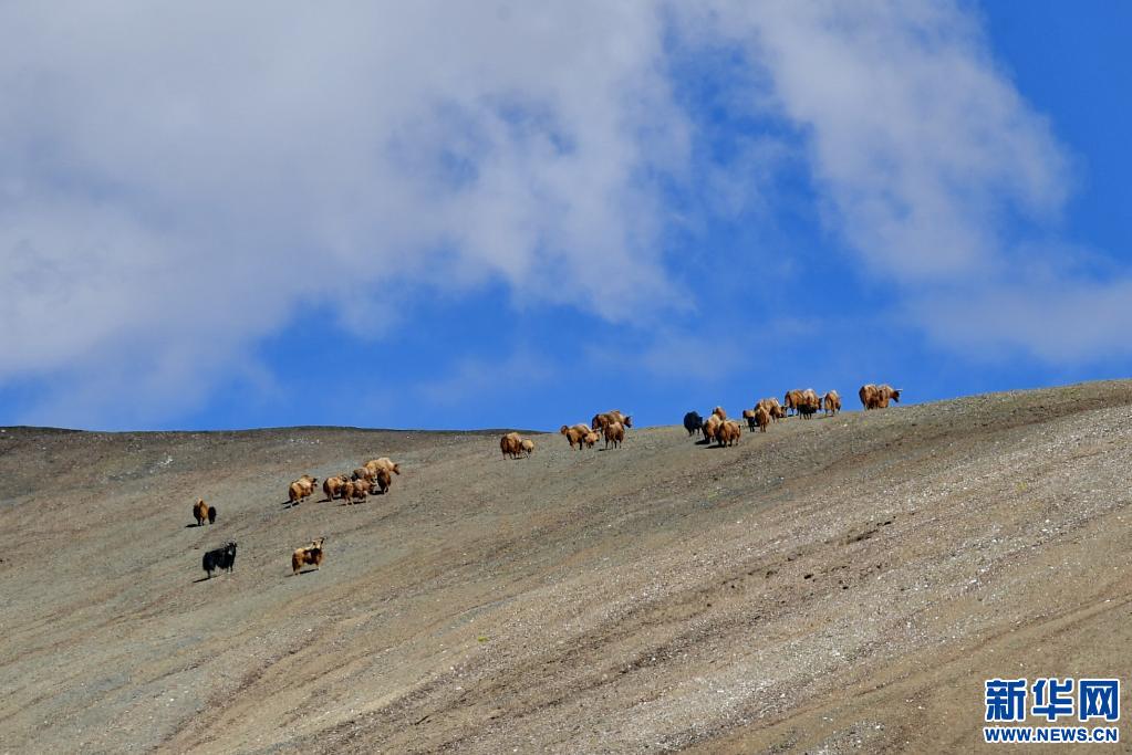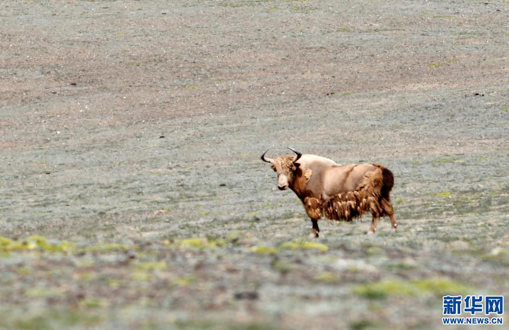 西藏羌塘國家級(jí)自然保護(hù)區(qū)里的金絲野牦牛。(新華社記者 張汝鋒 攝)