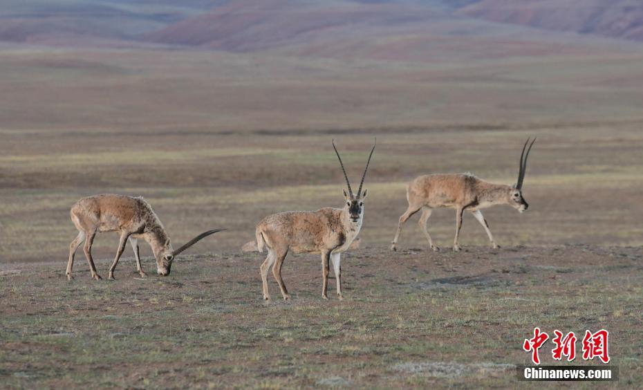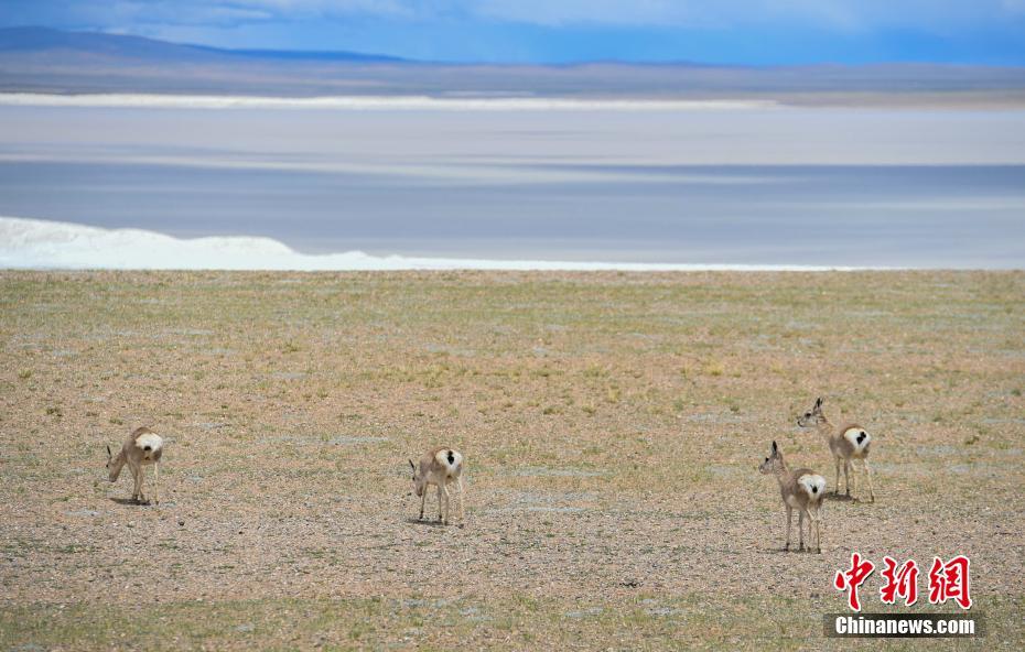 6月17日,西藏那曲羌塘草原上的藏羚羊。羌塘草原位于西藏自治區(qū)北部,平均海拔超過4600米,是目前中國海拔最高、面積最大的自然保護(hù)區(qū)。這里是野生動(dòng)物的樂園,藏羚羊、藏原羚、藏野驢等珍稀野生動(dòng)物與雪山、草地、藍(lán)天、白云,構(gòu)成撼人心魄的壯美畫面。 中新社記者 貢嘎來松 攝