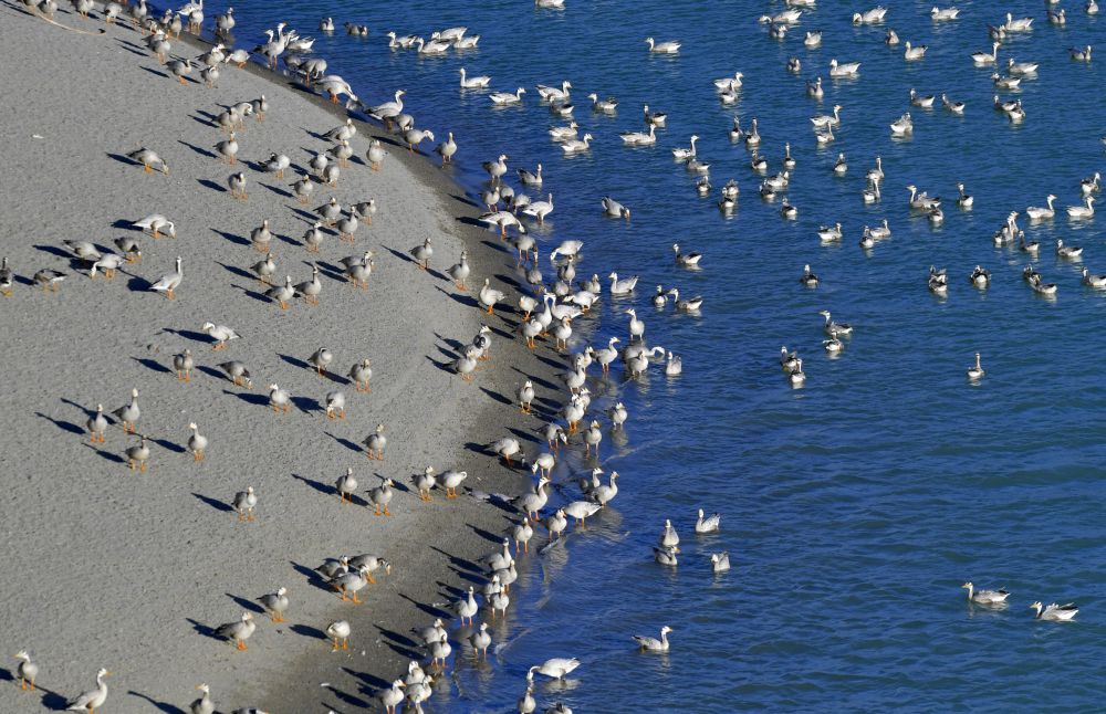 西藏雅尼國(guó)家濕地公園水鳥(niǎo)翔集(2021年2月2日攝)。