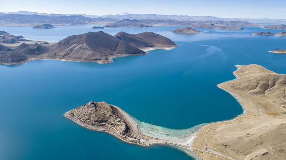 這是西藏羊卓雍錯(cuò)景色(2021年1月10日攝,無(wú)人機(jī)照片)。