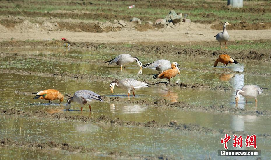 入冬以來,大批的斑頭雁、赤麻鴨等鳥類從藏北地區(qū)的湖泊濕地遷徙到藏南河谷地帶過冬。在河谷沿線的河流、湖泊、農(nóng)田等地,都可看到這些“小可愛”們嬉戲、覓食,成為冬日里的美麗風景。近年來,西藏不斷加大候鳥棲息地保護力度,候鳥的生存環(huán)境得到有效改善。圖為11月12日,斑頭雁、赤麻鴨等鳥類在西藏山南市扎囊縣境內(nèi)的農(nóng)田覓食。 冉文娟 攝